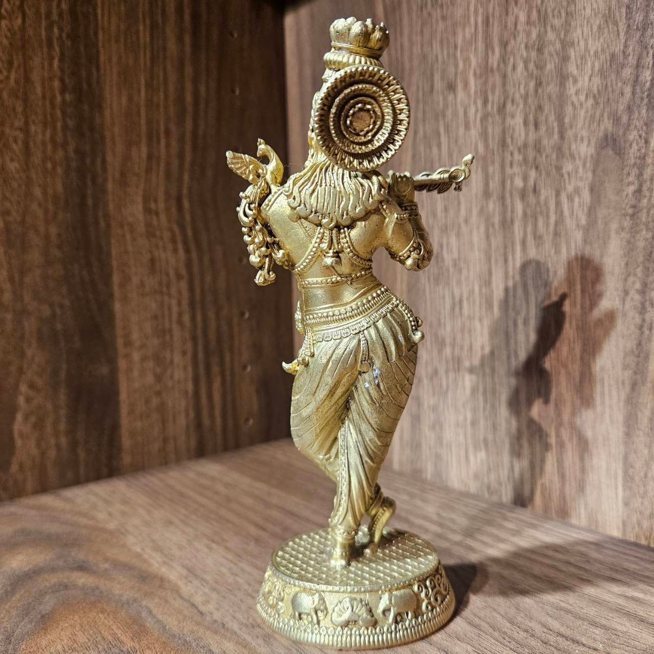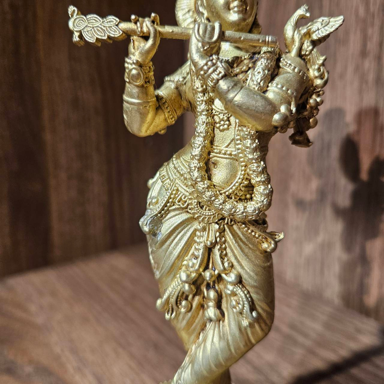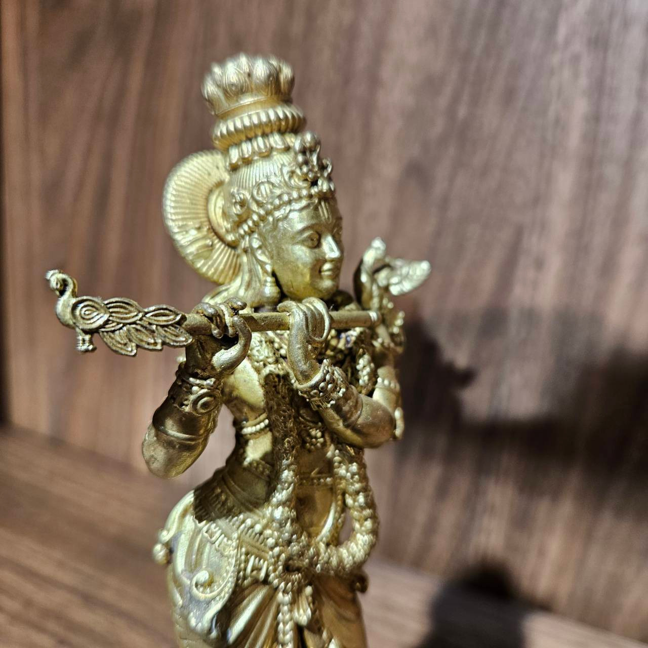 孔雀的羽飾、奎師那的姿態、長笛的細節,皆經細緻刻畫,呈現出動靜之間的平衡——彷彿音樂正在流動,卻又凝止於此刻。