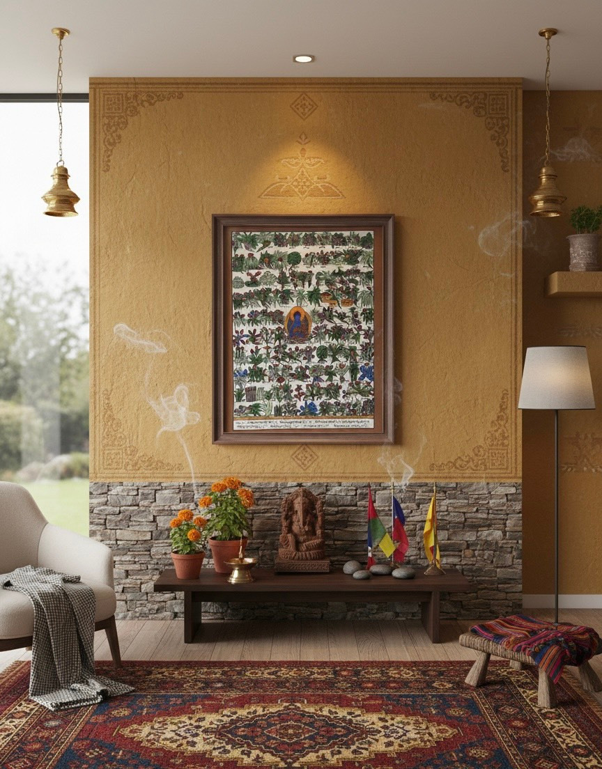 靜心空間、診療室、書房、修行壇城或文化收藏牆面。